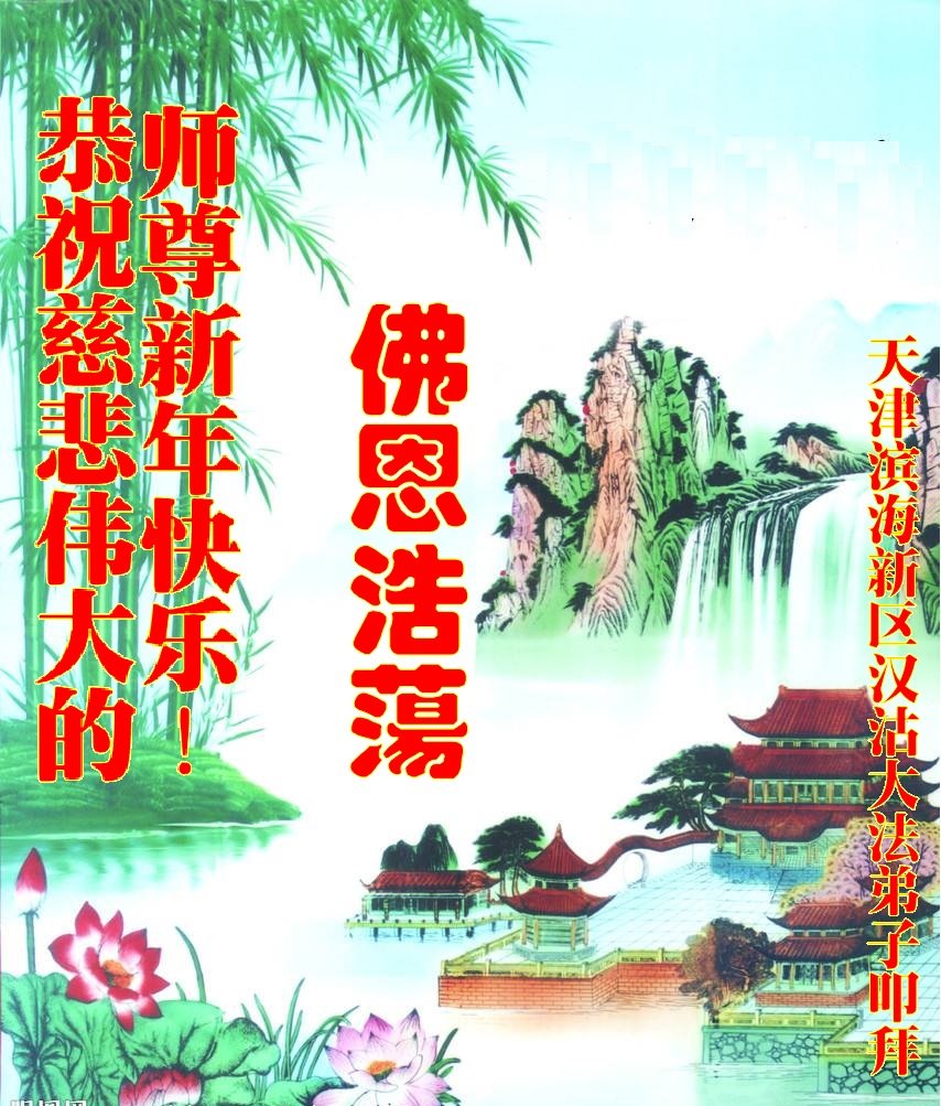 谢谢师尊,感恩师尊,不辞劳苦,慈悲苦度。 师恩似海,佛恩浩荡,每当想起,泪如花飞。 师尊您为众生操尽了心,是您的巨大承受和无量的慈悲才有弟子和众生的现在,您的慈悲遍布满苍宇,您的威德照耀全苍穹。弟子给师尊拜年了!惟愿师尊笑!师恩浩荡弟子们无以为报,只有在今后助师正法的路上更加勇猛精進,整体配合做好师尊交给的三件事,请师尊放心。跪拜师尊!合十! 天津河西区七名大法弟子给慈悲伟大的师尊拜年!
