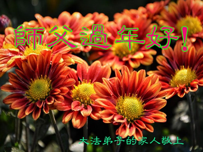 尊敬的大法师父好!我是您弟子的家人,这些年来我相信法轮大法好,受益很大。我会一如既往的支持法轮大法,支持您的弟子修炼好。在这迎接新年的日子里,衷心祝您新年快乐!盼师父早日回国。 山东潍坊三位大法弟子携全家人恭祝慈悲伟大的师尊过年好!
