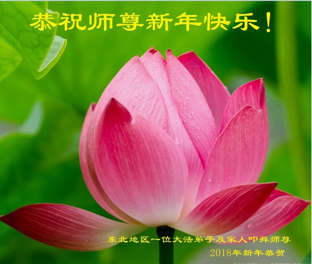 东北地区的一位大法弟子和全家人恭祝慈悲伟大的师尊新年快乐! 师父您好!师父您辛苦了!弟子叩拜师尊谢师恩!二零一七年已经过去,新的一年开始了,弟子只有精進再精進,做好三件事,多救人,愿师父多一份欣慰,少一份操劳。弟子在新的一年里,要更加精進,跟上师父的正法進程,多学法,学好法,修好自己多救人,完成使命报师恩。 大陆一大法弟子祝师尊新春快乐!
