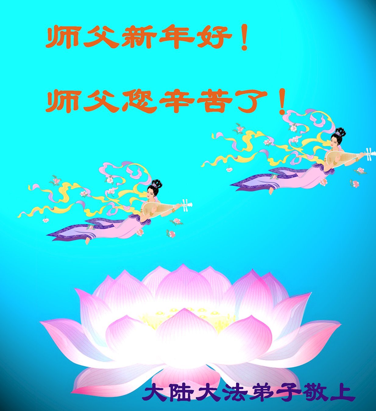 恭祝慈悲伟大的师尊新年快乐! 大陆大法弟子祝师父新年好!
