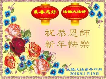 在2018年传统新年到来之际 ,祝慈悲伟大的师父新年快乐!在新的一年里,弟子一定要跟上正法進程,不辱师命,真修。 实修。跟师父圆满回家。 叩拜师尊 大陆弟子 全球营救特殊案例组大法弟子恭祝师尊新年快乐!