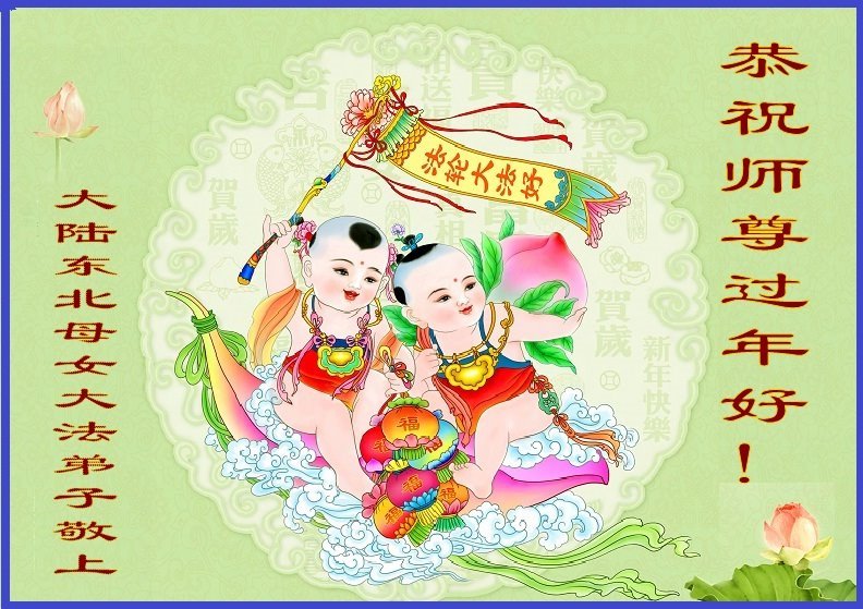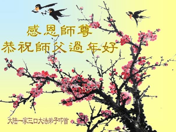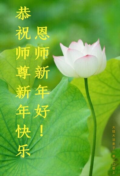 恭祝师尊新年快乐!恩师新年好!大陆大法弟子一家三口敬上。 大陆一大法弟子全家五人恭祝慈悲伟大的师父过年好!