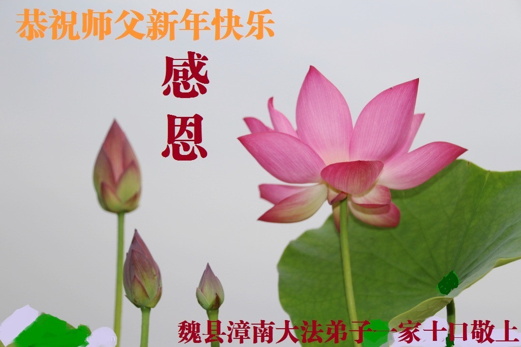 师父辛苦了! 师父谢谢您! 我们感恩师父的慈悲救度,感恩师父为弟子开示洪大的正法理,感恩师父的谆谆教诲,感恩师父把弟子铸就成能助师正法的生命,在新的一年到来之际,在这全球大法弟子拜贺师父新年的时刻,在这四海讴歌,普天赞颂师恩的时刻,弟子谢谢师父!弟子也代表得救的生命谢谢师父!弟子们会牢记自己的责任和使命,用实修、做好三件事、全力救度众生来回报师父的期盼与苦度! 严寒即逝又逢春 普天苍宇颂师恩 大法开启正法理 弟子世间卓不群 责任使命牢牢记 救人更争秒与分 名利宠辱俱忘却 唯恐稍怠愧师尊 真相撒遍世间道 但为新宇亘古欣 河北阜平大法弟子一家恭祝师尊过年好!