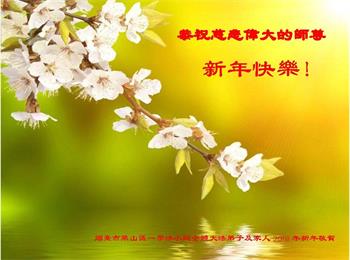 山东省烟台市莱山区一学法小组全体大法弟子及家人恭祝慈悲伟大的师尊新年快乐!