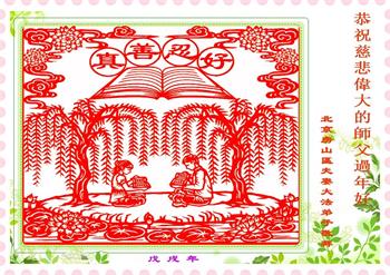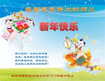 用尽人类的语言也无法表达弟子全家对师尊的感恩!在新的一年里,弟子们唯有精進报师恩!谢谢师尊的慈悲救度! 天津大法弟子和家人及明白真相的亲朋好友向尊敬的师父拜年了!