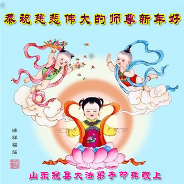 恭祝慈悲伟大的师父过年好!感谢师尊对我们的慈悲苦度。学法小组全体弟子虔诚叩拜。 山东省聊城市冠县大法弟子恭祝慈悲伟大的师尊新年快乐!