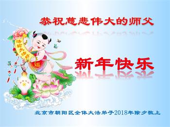北京市朝阳区大法小弟子恭祝师父新年快乐! 北京朝来万通市场职工向李洪志师父问好!谢谢李老师,您辛苦了!
