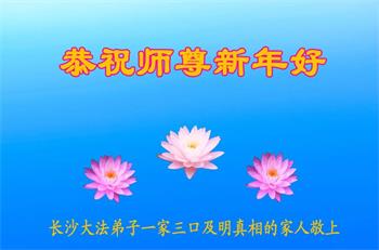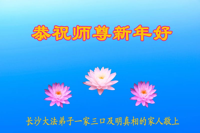 湖南省长沙大法弟子一家三口及明真相的家人恭祝慈悲伟大的师尊新年好!