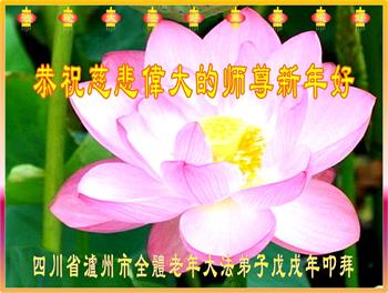尊敬的慈悲伟大的师尊好!师尊您辛苦了!谢谢师尊的慈悲苦度!在新的一年里,我们一定精進、再精進,做好三件事,愿师尊少一些操劳,多一份欢心。千言万语,万语千言:感谢师尊!谢谢师尊!叩拜师尊! 四川省泸州市全体老年大法弟子恭祝慈悲伟大的师尊新年好!