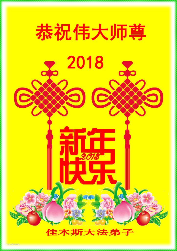 天降祥瑞春光照,戊戌新年就来到。远隔重洋的大法弟子以真诚的心给慈悲伟大的师尊拜年,恭祝师尊新年好!新年快乐!弟子将一如既往,踏踏实实的为修好自己,为救度更多的众生,做好大法弟子应该做好的三件事。 修去人心走正路, 二十五年心如初; 把握自己再精進, 跟随师尊踏归途! 北京学院路地区一老年大法弟子 叩拜师尊 丁酉年 腊八节 四川苍溪县老年夫妻大法弟子及家人恭贺慈悲伟大的师父新年快乐!