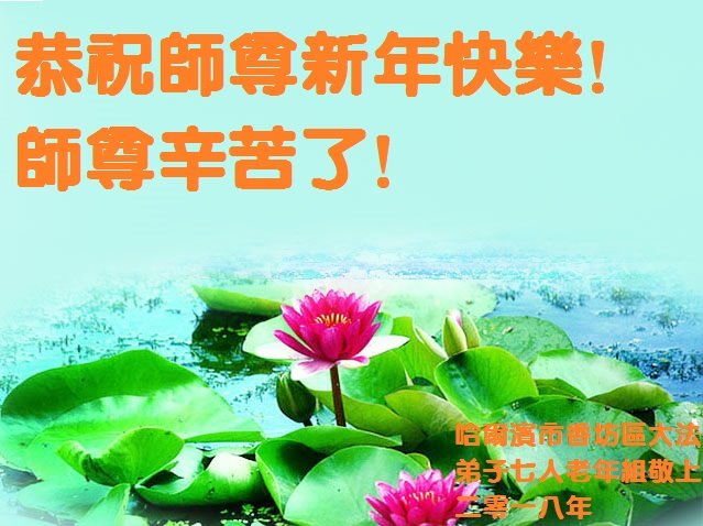 我们是在“七·二零”江泽民集团迫害前修炼法轮大法的老弟子。在伟大的师父的慈悲保护下我们从走到了今天。在这二十多年的艰苦岁月里,每时每刻都深深的感受到师父的保护,在今后的每一天,我们都要时刻牢记师父的教诲:做好三件事,多救人,完成历史使命,圆满随师还。 再一次恭贺伟大慈悲的师父新年快乐! 跪拜!双手合十 哈尔滨市双城区老年大法弟子恭祝师父过年好!