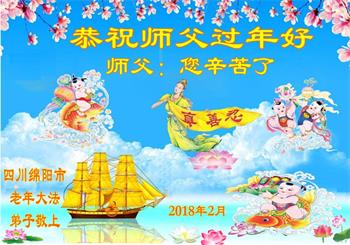 在传统的中国新年到来之时,我们绵阳老年大法弟子,首先恭祝我们无限慈悲的伟大师父新年快乐!并附一张敬献师尊。 我们深知:在正法越接近尾声,邪恶虽然越来越少、但会越疯狂,这是邪恶被灭亡之前回光返照;同时,这也是考验大法弟子真修、实修是否达到大法要求标准的最后检验时段;我们更知,尤其是我们老年大法弟子中,相当部份早已超过原来的天定年龄,现仍健在,是师父给我们延续来的生命,应当全部用在证实大法上,包括一言一行。可是我们有部份包括筆者在内的老年同修不是做的很好。 在新的一年开始时,我们向师父表示:一定不辜负师尊的盼望,一定认真学好法“以法为师”,充分运用好师父用巨大承受延续来的时间、尽量多救世人,在兑现史前誓约的实修中,特别注意时时事事向内找,不断修去一切执著、修去一切不符合大法的心性上的偏差。最后完全达到师尊要求的标准、随师回家!请师尊放心! 四川绵阳市老年大法弟子 敬上 2018年2月5日 宁夏回族自治区一老年大法弟子恭祝师尊过年好!