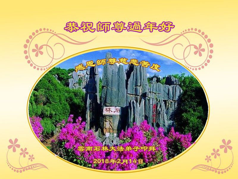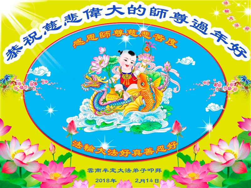 【明慧网二零一八年二月十七日】 云南昆明市官渡区大法弟子恭祝慈悲伟大的师尊过年好!