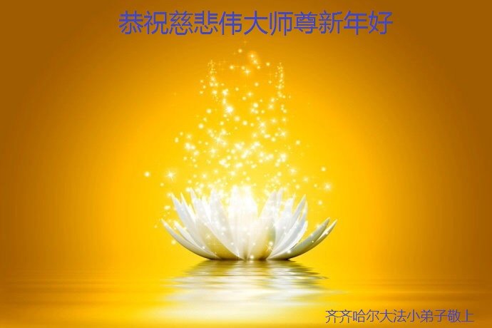 恭祝慈悲伟大的师尊新年快乐!师父家乡的大法弟子牢记师尊的法,向内找,修心,修好自己,修去各种执着,做好大法弟子应该做好的三件事,就一颗心,跟师父回家。学法小组的大法小弟子:感激师尊的慈悲救度!师尊新年快乐! 吉林省长春大法弟子及家人恭祝慈悲伟大的师尊新年快乐!
