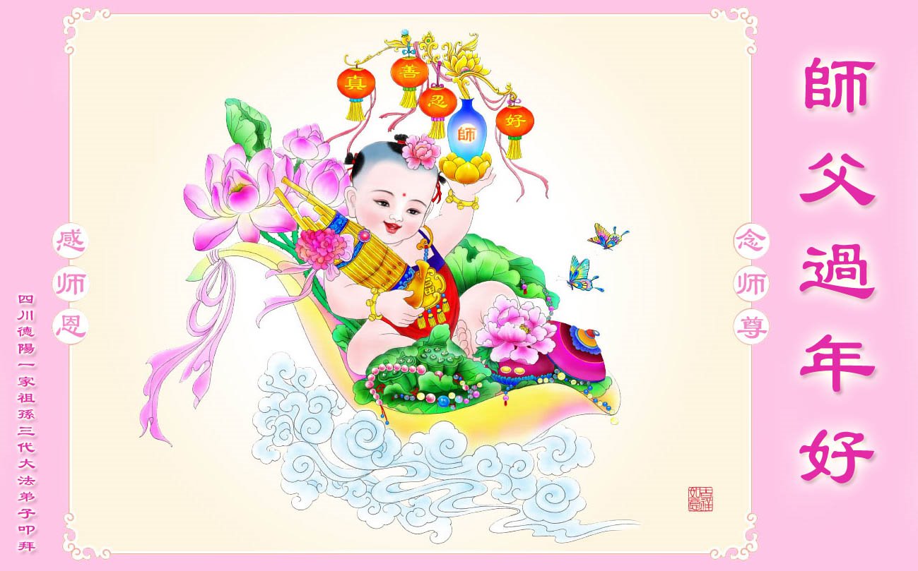 师父您辛苦了!新的一年我们勇猛精進做好三件事,早日跟师父圆满回家。师父新年好! 四川德阳一家祖孙三代大法弟子恭祝师父过年好!