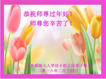 【明慧网二零一八年二月十七日】 山东烟台全体大法弟子恭祝慈悲伟大的师尊过年好!