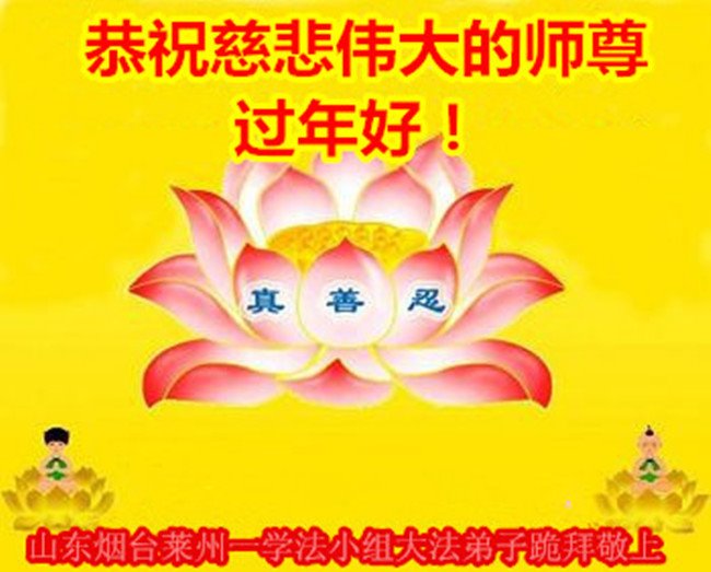 山东烟台莱州一学法小组大法弟子恭祝慈悲伟大的师尊过年好!