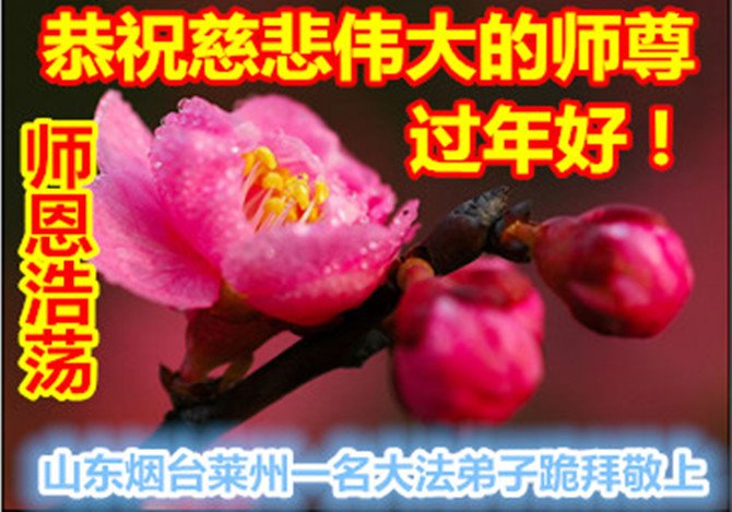 问声师父过年好 每念师尊泪如涛 千恩万谢道不尽 感恩师尊大法传 弟子决心跟师尊 转变观念助师行 修好自己度众归 圆满随师返家园 山东烟台莱州一名大法弟子恭祝慈悲伟大的师尊过年好!