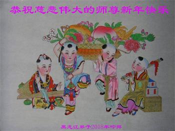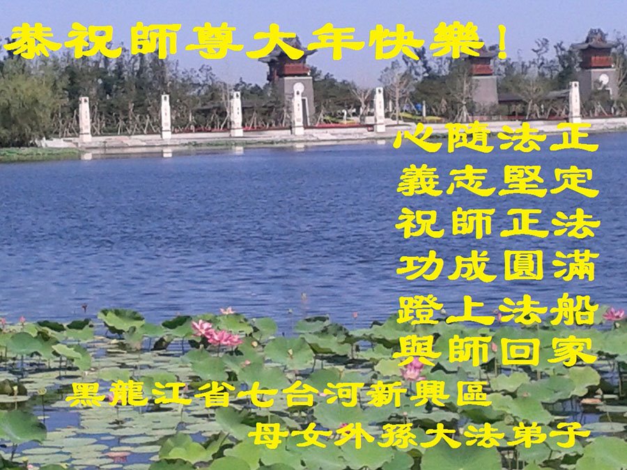 师尊新年好!师尊辛苦了!弟子在新的一年里更加精進,做好三件事。圆容整体,让师尊多一份欣慰,少一份辛苦!谢谢师尊慈悲苦度。 黑龙江省七台河新兴区母女外孙大法弟子恭祝师尊大年快乐!