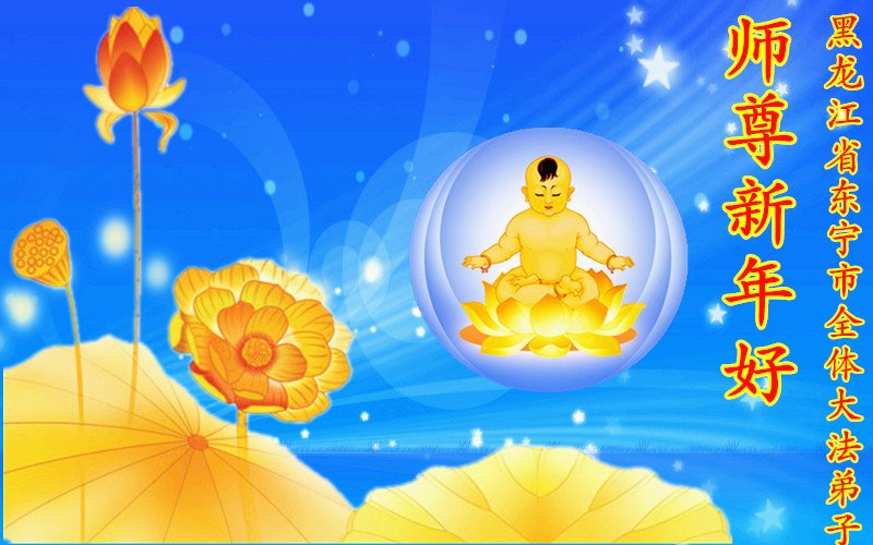 师尊:新年好!您辛苦了!谢谢师尊的慈悲苦度!弟子们叩拜师尊。 黑龙江省牡丹江市东宁市全体大法弟子恭祝师尊新年好!