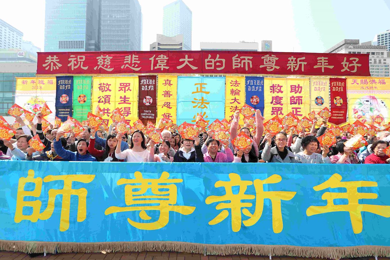 【明慧网二零一八年二月十七日】二零一八年二月十六日,戊戌年大年初一,香港法轮功学员一早来到中环爱丁堡广场举行新年祝贺集会,向法轮功创始人李洪志师父拜年,恭祝慈悲伟大的师尊过年好,敬颂师父救度洪恩。 图1:香港法轮功学员在中环爱丁堡广场集会,恭祝慈悲伟大的师尊过年好。 |