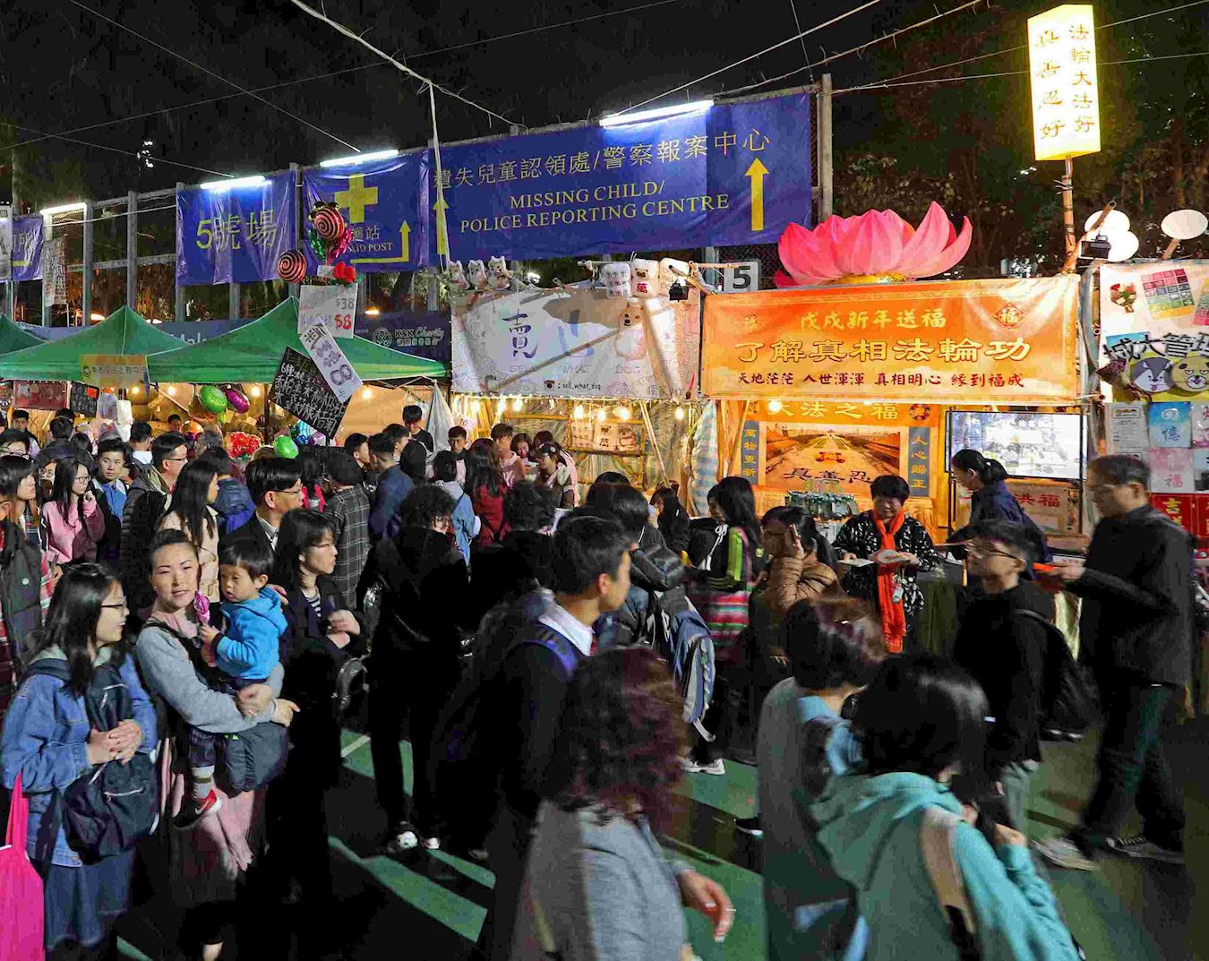 在红磡嘉乐轩真相点,每天都有很多旅游巴士接载大陆游客前来。在那里讲真相的香港学员郑女士说,近年中共团伙在场捣乱,干扰民众退!党!,学员便用喇叭来讲真相,让游客们知道中国大陆的局势,退!党!保平安。有游客听到真相会大胆过来跟学员交谈,也有举手支持的。也有香港人听过真相后正义地斥责中共团伙,许多街坊都不忿这些帮凶所为,纷纷鼓励法轮功学员要坚持下去。 过年救人忙 年宵传真相受注目 在维多利亚公园举行的全港最大型年宵花市,法轮功学员多年来都开设年宵讲真相摊位,今年主题是“戊戌新年送福--——了解真相法轮功”,学员在场派发真相小莲花、福字帖、送福锁匙扣等小礼品,以及多种真相资料,大受市民及游客欢迎。 一位女士带孙儿逛维园年宵,接过小莲花、福字帖和真相小册子。她表示从洛杉矶返港过年,了解法轮功真相,也知道中共打压的严重。她表示支持法轮功,“最终会胜利的。” 香港市民陈小姐在年宵真相点驻足观看,她赞赏法轮功学员的和平和坚持,“法轮功让更多人看到,会让很多人得益。” 市民拜年 祝愿师父早日回国 陈小姐表示,从法轮功学员在街上派发的真相资料、《明慧周报》中了解到法轮功祛病健身的效果,以及中共残酷的迫害,包括活摘器官的惊天暴行,“很残忍,前所未有的残忍,我觉得这样的中国政府(中共政权)很羞耻。” 正因如此,她更觉得法轮功学员坚持讲真相反迫害很重要,“是很有效,我就是这样知道(真相)。”包括退!党!运动,“这是有效的,多些人不相信它(中共),多些人退!党!。因为(共产党)骗了很多人去信它,自己的口号就是伟大光荣正确,骗人去信它。现在个个退!党!,起码少很多人去信它、支持它。” 她佩服法轮功学员面对被活摘器官等残酷迫害仍坚持去修,是真心、真正的修炼。她强调,在中国传出的法轮功,当然应该在中国有正常、合法的修炼环境。 正值中国新年,陈小姐向法轮功创始人拜年,“祝福李洪志先生早一些可以回到中国传扬佛法。祝愿新年快乐!” 福字帖大受欢迎 派罄再加印  图10:法轮功学员在维园年宵市场开设的真相摊位,大受民众欢迎。 |