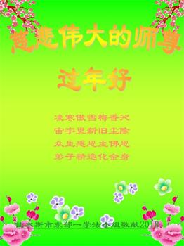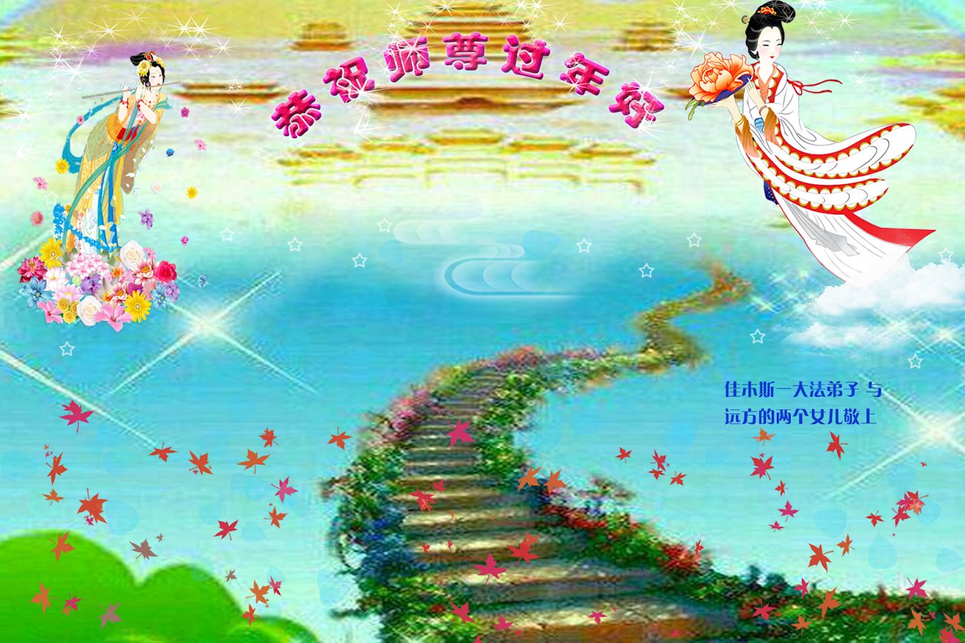 恭祝慈悲伟大的师父过年好!师父您辛苦了!师父过年好! 弟子们一定珍惜机缘,珍惜时间,不负正法时期大法弟子的称号,纯净自己,修好自己,多多救众生。愿伟大的师尊多一份欣慰少一份操劳。 弟子们叩拜师尊,再次恭祝慈悲伟大的师父过年好!师父过年好!师父过年好! 佳木斯东部一学法小组敬献 黑龙江省佳木斯一大法弟子与远方的两个女儿恭祝师尊过年好!