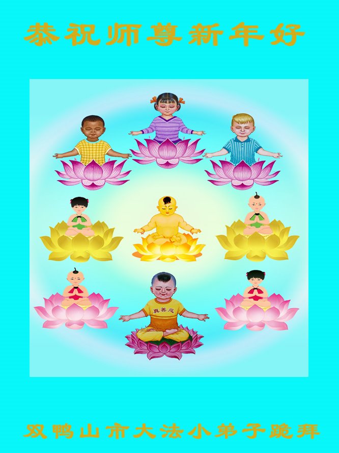 辞旧迎新又一年 大法洪传全世界 感恩师尊救众生 大陆弟子想恩师 遥拜恩师把家归 弟子做好三件事 精進精進再精進 恭敬师尊新年快乐! 祝大法洪传世界 师父慈悲度众生 遵照大法做好人 新天新地新宇宙 年年天天要救人 快把三件事做好 乐与师尊把天归 河南小弟子给师父拜年!