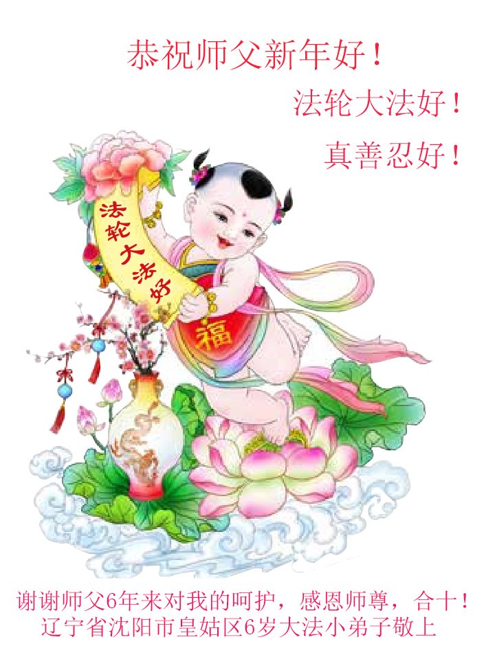 北京昌平区的大法小弟子们祝师父过年好!师父过年好!谢谢师父! 辽宁省沈阳市皇姑区6岁大法小弟子恭祝师父新年好!