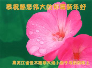 我是大法小弟子,与奶奶同修给师父拜年了!师父过年好!师父辛苦了!在新的一年里,要与奶奶学好法,修好自己,做好三件事,互相配合多救人,共同精進! 辽宁沈阳市一大法弟子携大法小弟子恭祝师尊新年好!