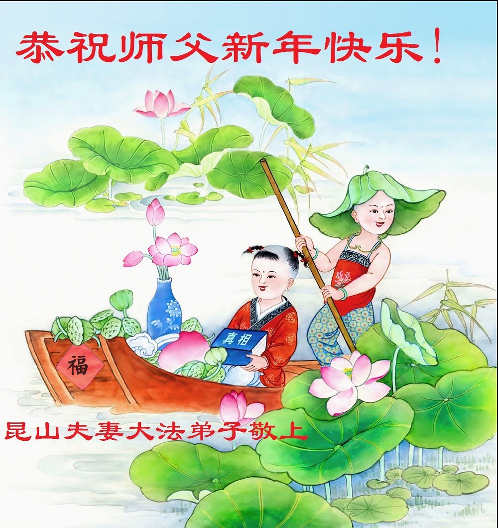 修炼很多年了,因为弟子悟性差,在邪恶旧势力的欺骗和迫害中,经常感到迷茫、困惑和消沉,无法突破,甚至自己都觉的自己已经不行了,没有希望了。但是师父总是会用各种办法点醒我,让我明白,使我坚持到现在。 真正对弟子们不放弃的只有伟大慈悲的师父! 在戊戌年中国新年来临之际,借明慧网向师父表达我内心最诚挚的祝愿和感恩!走好一个大法弟子今后的路,不辜负师父的期望! 江苏省淮安市涟水县两个大法弟子恭祝师尊新年快乐!