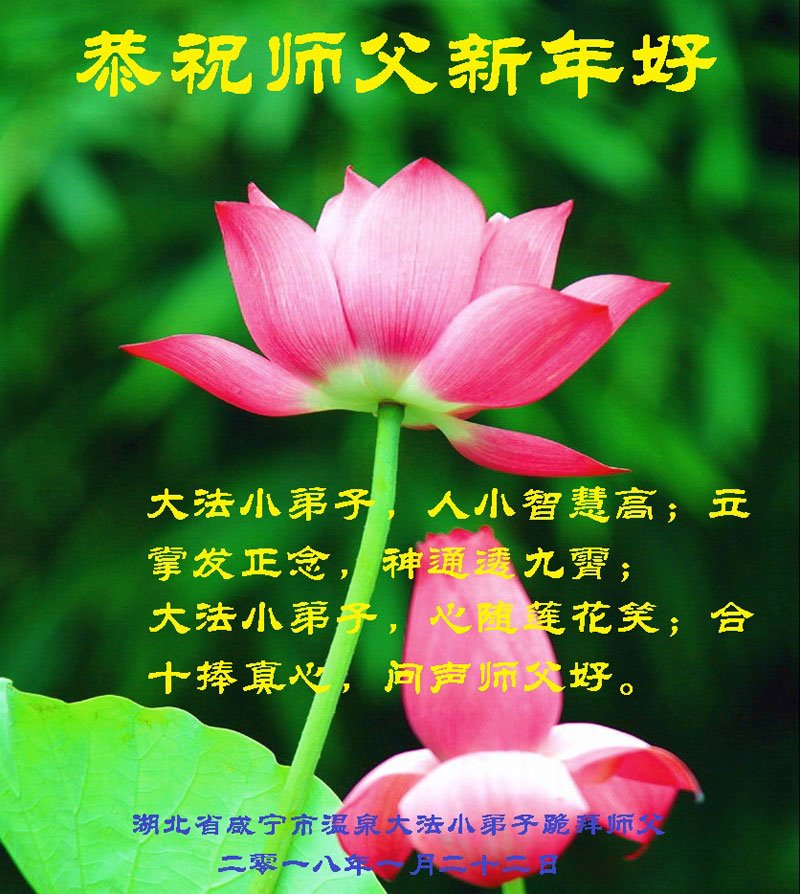 大陆天津市南开区大法弟子 2018年02月16日 湖北省咸宁市温泉大法小弟子跪拜恭祝师父新年好!