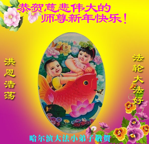 祝慈悲伟大的师父新年快乐!我们一定好好修好自己,去掉怕心,配合整体,做好“三件事。 黑龙江省哈尔滨市大法小弟子恭祝慈悲伟大的师尊新年快乐!