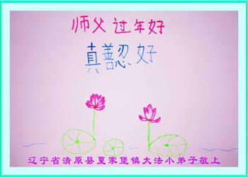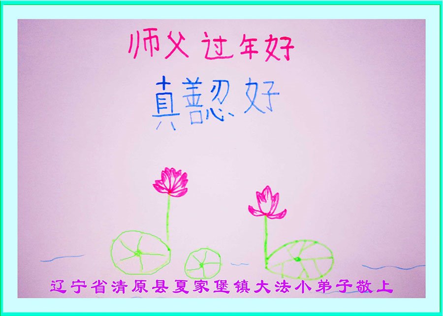 慈悲伟大的师尊: 新年好! 这亘古不遇,千载难求的大法我们得到了,庆幸与师父正法时期同在,能够助师正法。 穷尽宇宙中所有的语言都无法表达弟子们感激的心情,心中唯有为自己没做好而感到愧疚。 得法20多年来,弟子时刻感受到师父的慈悲呵护,跌跌撞撞,连滚带爬,走到今天。 记得某年刚从魔窟回来,母亲感伤万千的说:孩子,你现在一无所有,以后怎么生活? 弟子顿时泪如雨下:我有师父,有大法,我什么都不缺,也什么都不怕。 感谢师父,走过了最艰难,最黑暗,最坎坷的岁月… … 在新的一年里,弟子一家人按照大法的要求,做好三件事,不辜负师父的殷切期望和自己的历史使命,救度众生,圆满随师还! 最后附上6岁小弟子的话(小弟子跪在地上,给师父叩拜三次):师父新年好!祝师父身体健康,快乐!感谢师父的慈悲救度,让我们知道大法的道理。 在新的一年里,我会按照真善忍要求自己,做一个合格的大法小弟子。 深圳大法弟子一家人 吉林省长春大法小弟子恭祝师尊新年好!