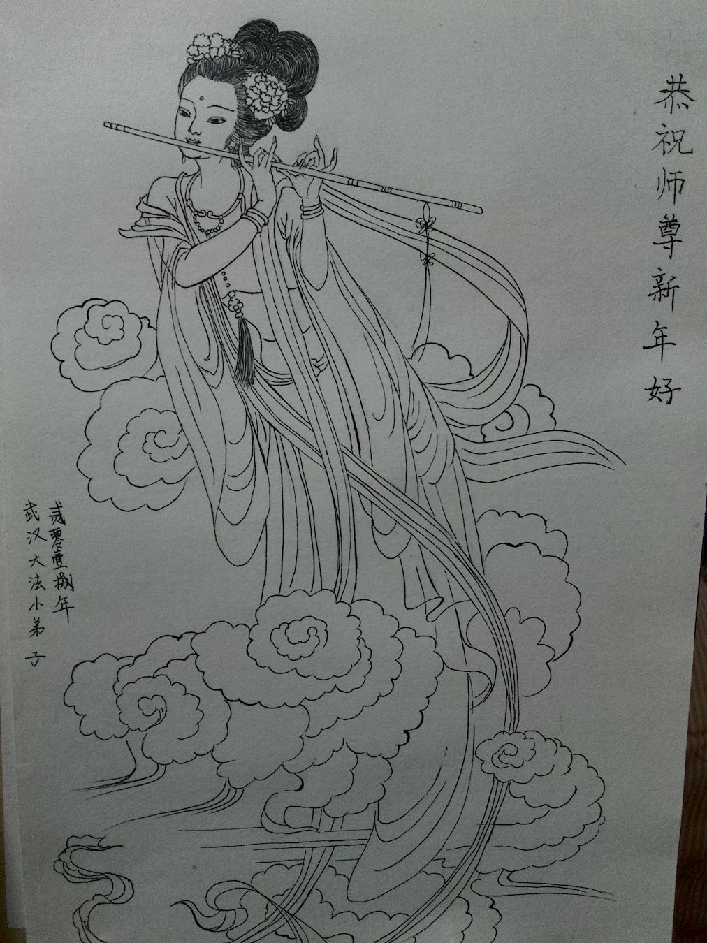 武汉大法弟子及家人恭祝师尊新年好!大法小弟子拙笔作画一副,给师尊拜年!了!师尊辛苦了! 湖北省荆门市钟祥市全体法轮大法弟子恭祝师父新年快乐!