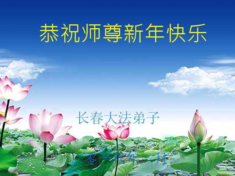 师尊新年好! 谨代表全家向师尊问好,回首这些年走过的路,有幸福荣耀有痛苦艰辛,作为大陆普普通通的一个修炼家庭,我们经历了得法初期的如沐春风到迫害以来的血雨腥风,短短的二十六年生离死别家境巨变,不变的是师尊的慈悲呵护,不变的是弟子的精進之意。 又是一年除夕到, 感师恩,泪湿襟, 清香一柱心意表, 讲真相,救世人, 众生感念大法好。 大陆修炼的一家人 2018年除夕 新地号全体大法弟子给师父拜年