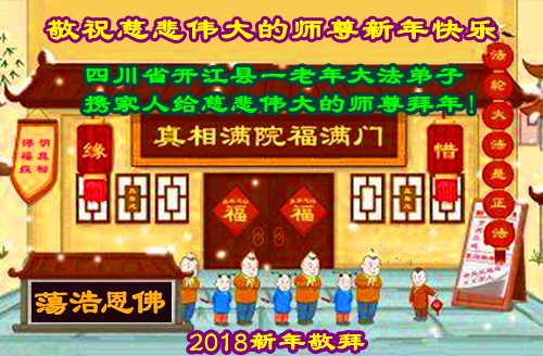 四川省达州市开江县一老年大法弟子携家人给慈悲伟大的师尊拜年!