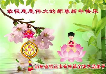 千言万语说不尽唯有精進谢师恩。 山东省烟台市招远市辛庄镇全体大法弟子恭祝慈悲伟大的师尊新年快乐!