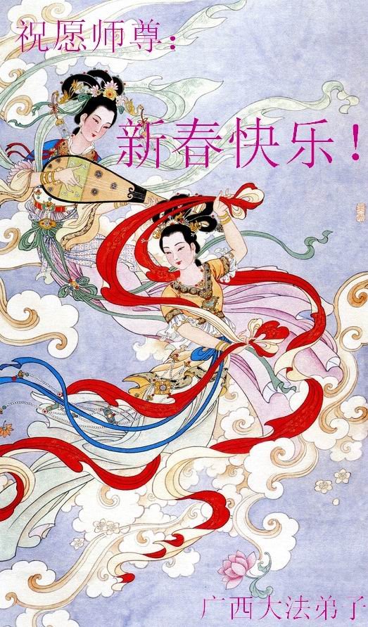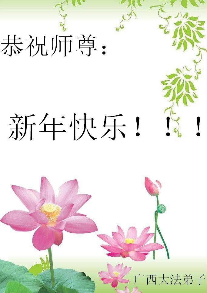 广西柳州大法弟子恭祝伟大的师尊新年快乐!感谢师尊的慈悲苦度,佛恩浩荡,我们一定精進实修,学好法,做好三件事,请师尊放心。 河南省郑州市大法弟子恭祝慈悲伟大的师父新年好!