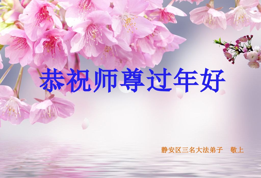 恭祝慈悲伟大的师父新年好!亿万年的等待,师父给予了我们太多太多。作为正法时期的大法弟子,我们无以为报,唯有按师父的要求,做好三件,精進实修。以报答师父的救度之恩。叩谢师恩! 上海市静安区三名大法弟子恭祝师尊过年好!