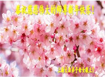 我们随同师尊走过风风雨雨的19年,今天值此新春佳节之际,恭祝师尊新年快乐!感恩师尊的慈悲苦度,作为子弟,一定抓紧时间,修好自己,救度众生,完成使命,随师尊回家。 上海杨浦区大法弟子恭祝师尊过年好!