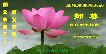 在这一年一度的节日里,弟子带领家人远隔千山万水恭祝师父新年快乐!衷心的道一声师父您辛苦了!在新的一年里,在师父的加持下,弟子一定会度过难关,跟上师父的正法進程,不辜负师父的慈悲救度,珍惜以后的每一天!叩谢师尊! 上海大法弟子恭祝师尊新年快乐!