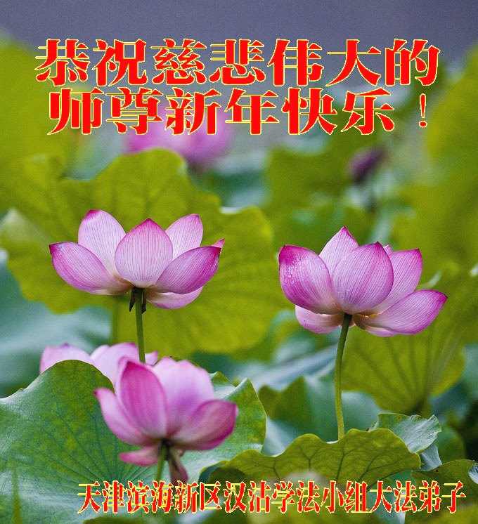 恭祝师尊新年快乐! 感谢师尊帮助。弟子虽有不足,但一定在法中归正,一定跟师父一修到底! 天津宝坻区青年大法弟子敬上 天津滨海新区汉沽学法小组大法弟子恭祝慈悲伟大的师尊过年好!