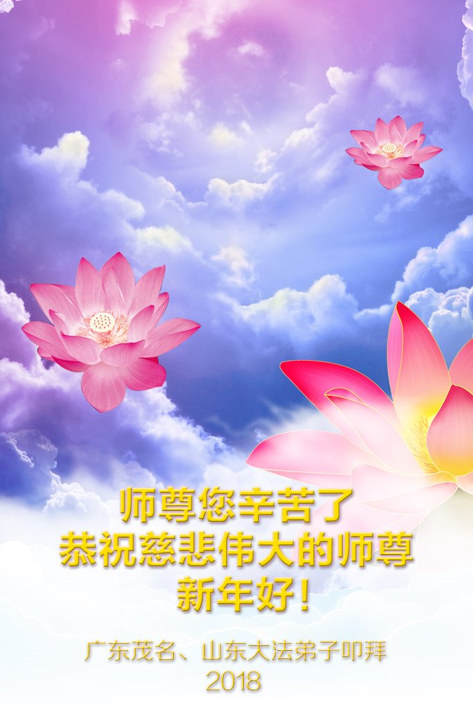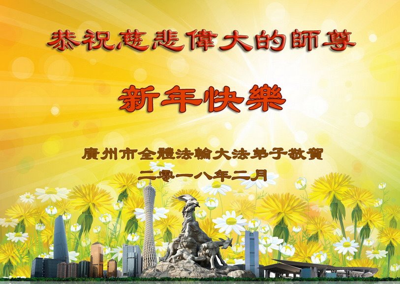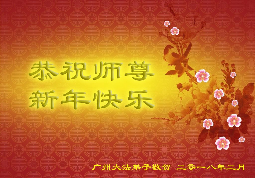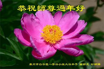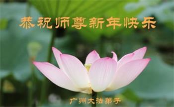 尊敬的师父好!在新的一年到来之际,弟子向伟大慈悲的师父拜年!弟子合十叩拜师尊! 广东省广州全体法轮大法弟子恭祝慈悲伟大的师尊新年快乐!