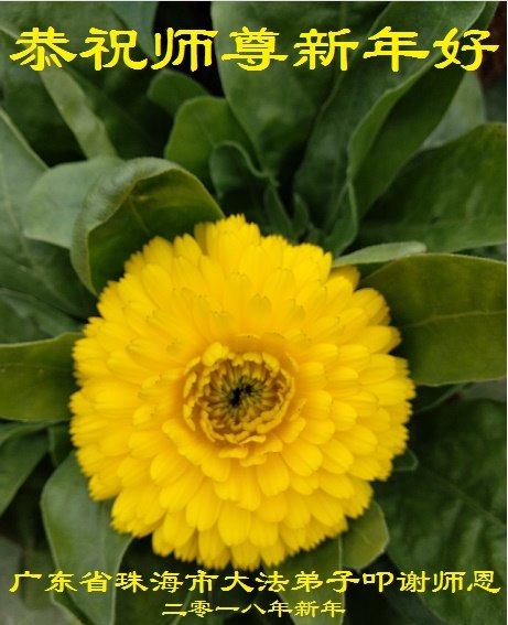 弟子们叩拜师父!恭祝师父新年好!师父保护弟子们一路走到今天,师父的救度之恩是弟子们永远也报答不完的,弟子们用尽语言也表达不了对师父的感恩之心。弟子们愿尽力做好三件事,修好自己,多救人,不负使命和责任。愿师父多一份欣慰,少一些操劳! 广东省广州大法弟子恭祝师尊新年快乐!
