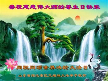 山东省威海市荣成市大法弟子恭贺世界法轮大法日!恭祝师父生日快乐!
