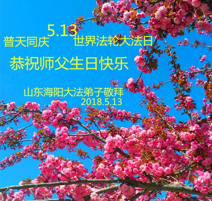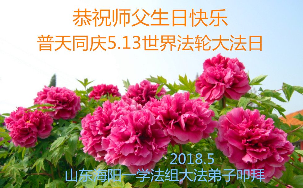 近二十年的修炼,从一少年修炼到一家五口修炼,从别人误解到现在认同支持大法,从一次次危险中保平安,意识到平时实修真善忍的重要,都离不开师父慈悲的保护!明真相得福报的亲人朋友、邻居乡亲有缘人恭贺法轮大法日!恭祝师父生日快乐! 辽宁建平农村大法弟子恭祝慈悲伟大的师尊生日快乐!普天同庆5.13世界法轮大法日!