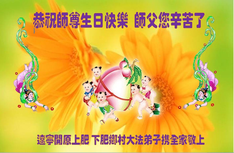 我们伟大的师尊,您给予弟子与众生的:是生命永恒的一切!师恩浩荡语难表,师恩浩荡无以报,值此普天同庆、同颂、同祝的辉煌时刻。弟子以无比感恩的心情,向慈悲伟大的师尊问好!师尊您好!您辛苦了!弟子遥祝师尊生日快乐!庆祝世界法轮大法日!” 合十! 四川省成都市郫都区乡村大法弟子恭祝慈悲伟大的师尊生日快乐!