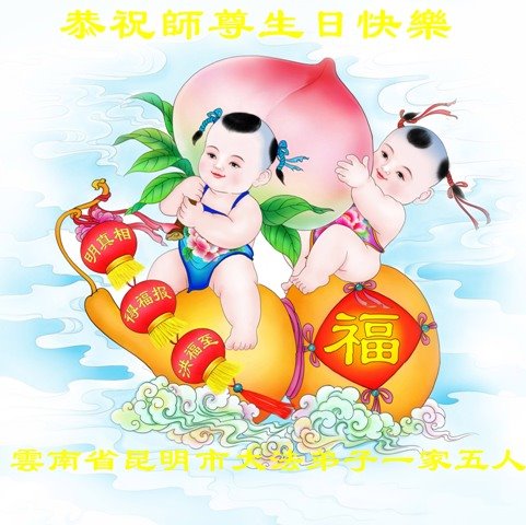 云南红河州大法弟子王春梅携家人恭贺法轮大法日!暨师尊华诞! 云南省昆明市一学法小组全体大法弟子:恭祝师尊生日快乐!同祝同颂5.13世界法轮大法日!