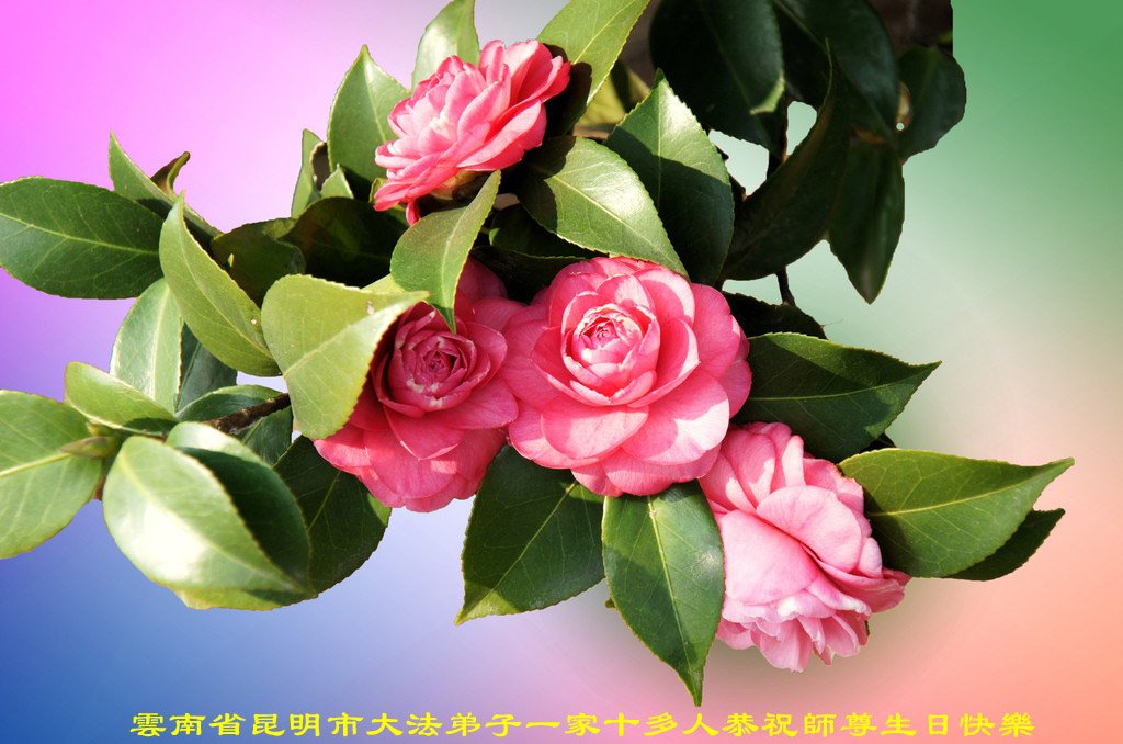 云南昆明大法弟子一家人恭祝师尊生日快乐!